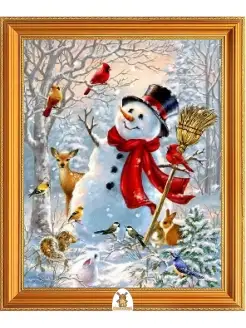 Алмазная мозаика 40х50 см. Снеговик с красным шарфом
