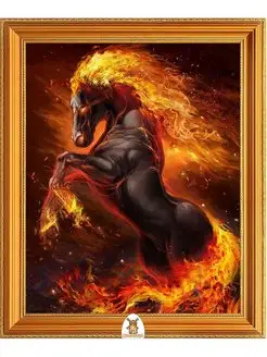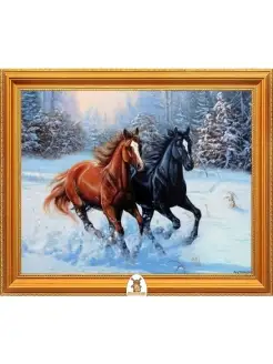 Алмазная мозаика 40х50 см. Два коня бегут по снегу