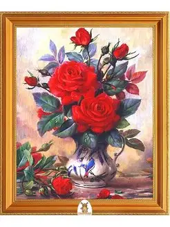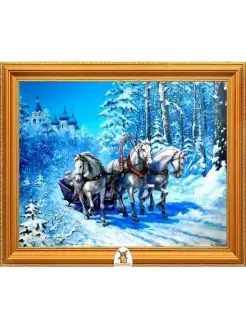 Алмазная мозаика 40х50 см. Тройка белых лошадей с санями