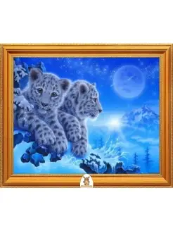 Алмазная мозаика 40х50 см. Два маленьких снежных барса