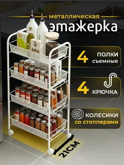 Узкая металлическая этажерка для ванной и кухни на колесиках