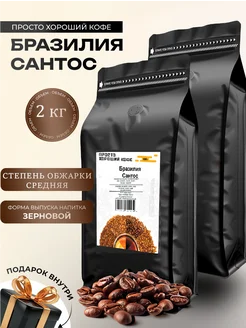 Кофе зерновой 100% арабика Бразилия Сантос 2 кг