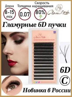 Готовые ресницы пучки для наращивания микс 6D изгиб C,D