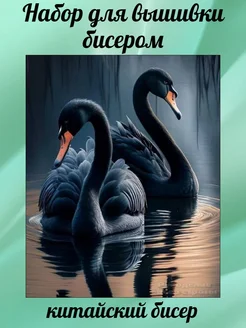 Набор для вышивания бисером "Чёрные лебеди" 24х30