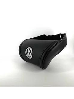 Черная подушка под шею с серой вышивкой для Volkswagen