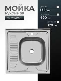 Мойка кухонная 60x60 см, нерж. сталь, с крылом
