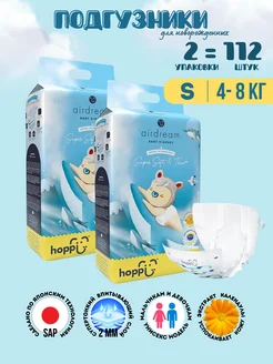 Подгузники размер S 2 (от 4 до 8 кг) 112 шт