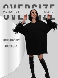Вечерняя футболка оверсайз с отстегивающимися перьями