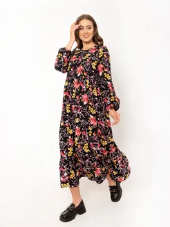 Платье длинное штапельное ярусное стиль бохо