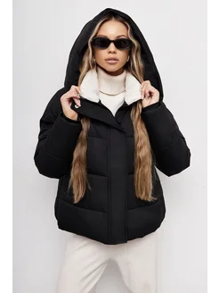 Куртка укороченная с капюшоном зимняя