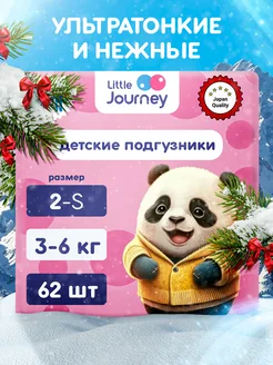 Подгузники для новорожденных 2 размер S 3-6 кг 62 штуки