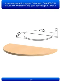 1шт Стол приставной полукруг "Монолит", 700х400х750 мм, БЕЗ