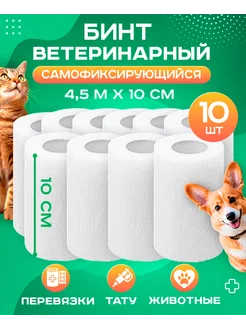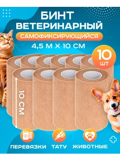 Бинт бандажный самофиксирующийся 10 см х 4,5 м, 10 шт