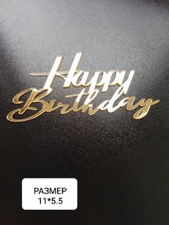Топпер акриловый зеркальный золотой для торта Happy Birthday