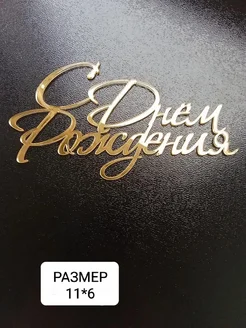 Топпер акриловый зеркальный золото для торта С днем рождения