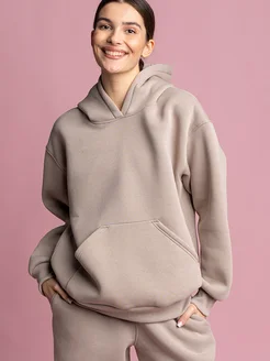 Теплый костюм ОВЕРСАЙЗ с начесом бежевый с капюшоном