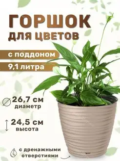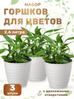 Горшок для цветов с поддоном кашпо растений 2,6л 3 штуки