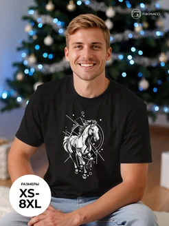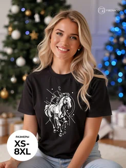 Футболка новогодняя с принтом "Конь Фибо" оверсайз