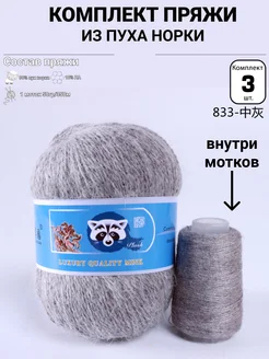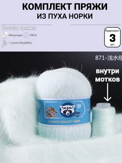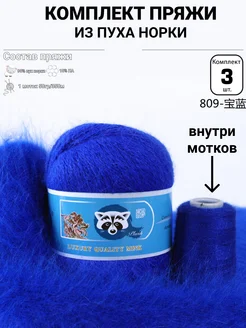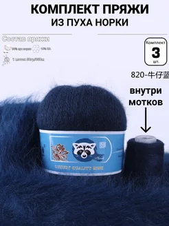 Пряжа пух норки синяя этикетка катушка внутри мотка