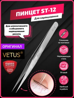 Пинцет для наращивания ресниц бровей профессиональный ST-12