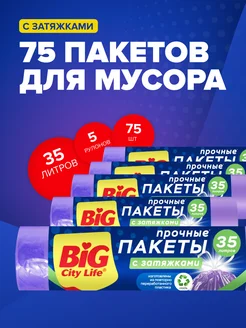Мешки для мусора 35 л с завязками 75 штук (5 рулонов)