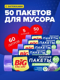 Мешки для мусора 60 л с завязками 50 штук (5 рулонов)