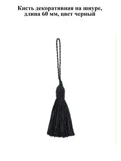 Кисть декоративная на шнуре, длина 60 мм, цвет черный
