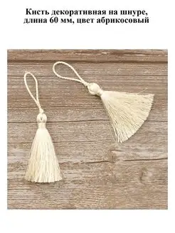 Кисть декоративная на шнуре, длина 60 мм, цвет абрикосовый