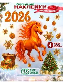 наклейка лошадь новогодняя двусторонняя 2026 огненная