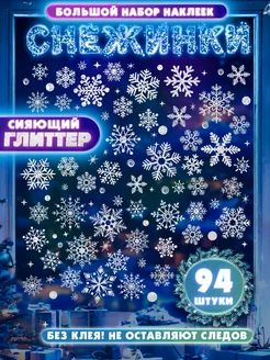 Новогодние наклейки на окна 2026 двусторонние снежинки