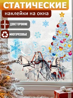 Наклейки на окна новогодние многоразовые на новый год лошадь