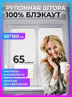 Рулонные шторы БЛЭКАУТ 65 на 160 см, белые жалюзи на окна