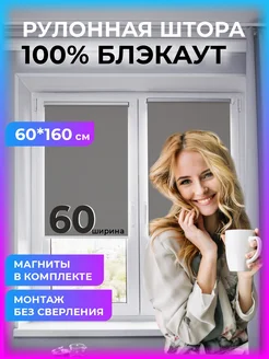 Рулонные шторы БЛЭКАУТ 60 на 160 см, серые жалюзи на окна