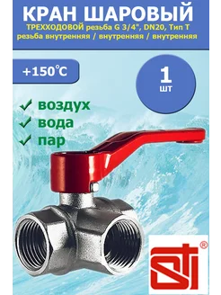 Кран трехходовой для воды 20 шаровой 1шт