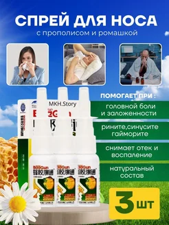 Капли в нос спрей китайский от насморка с прополисом 3 шт