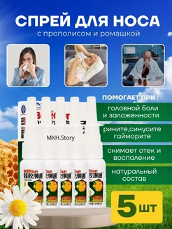 Капли в нос спрей китайский от насморка с прополисом 5 шт