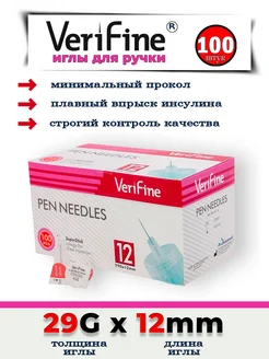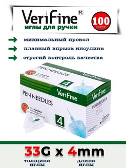 Иглы для инсулиновых шприц-ручек Верифайн, 4 мм, 33G, 100 шт