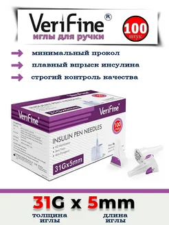 Иглы для инсулиновых шприц-ручек Верифайн, 6 мм, 32G, 100 шт