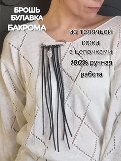 Брошь булавка из кожи с цепями