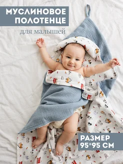 Муслиновое полотенце для новорожденных уголок с капюшоном