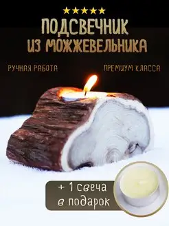 подсвечник из можжевельника интерьерный свеча в подарок