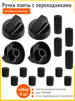Ручки для газовой плиты универсальные, 4 шт комплект, черные