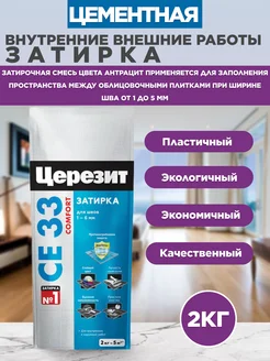 Затирка цементная Церезит CE 33 Comfort цвет антрацит 2 кг