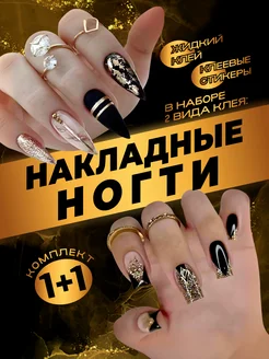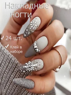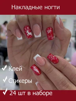 Накладные ногти с дизайном с клеем длинные 24 шт