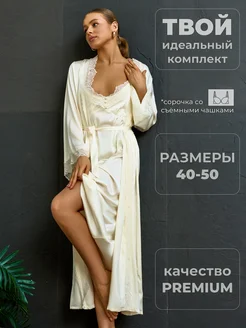 Пеньюар длинный шелковый халат с сорочкой