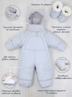 Комбинезон-трансформер 2 в 1 на меху для новорожденного