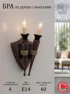 Светильник бра из дерева с факелами
