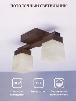 Потолочный светильник из дерева на два плафона цоколь Е27
