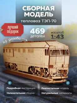 Конструктор деревянный ТЭП70. Сборная модель тепловоз