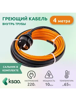 Греющий кабель саморегулирующийся с вилкой и сальником 4м